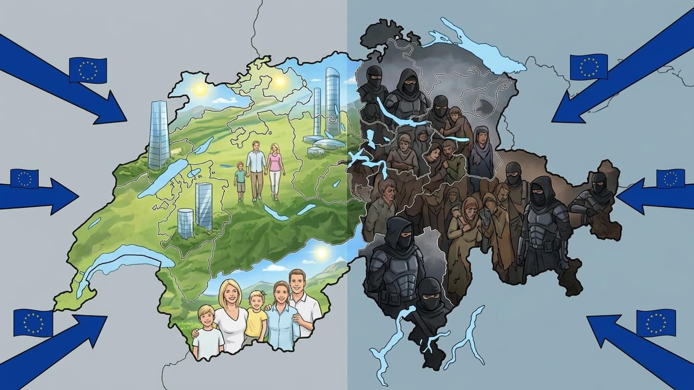 Entweder ein teures und überfülltes Land, das nur macht was Brüssel befiehlt. Oder eine freie Schweiz mit kontrollierter Zuwanderung und starken Bürgerrechten. Schauen Sie sich dazu den Podcast mit Vivienne Huber an, auf YouTube, Spotify oder Apple Podcast.