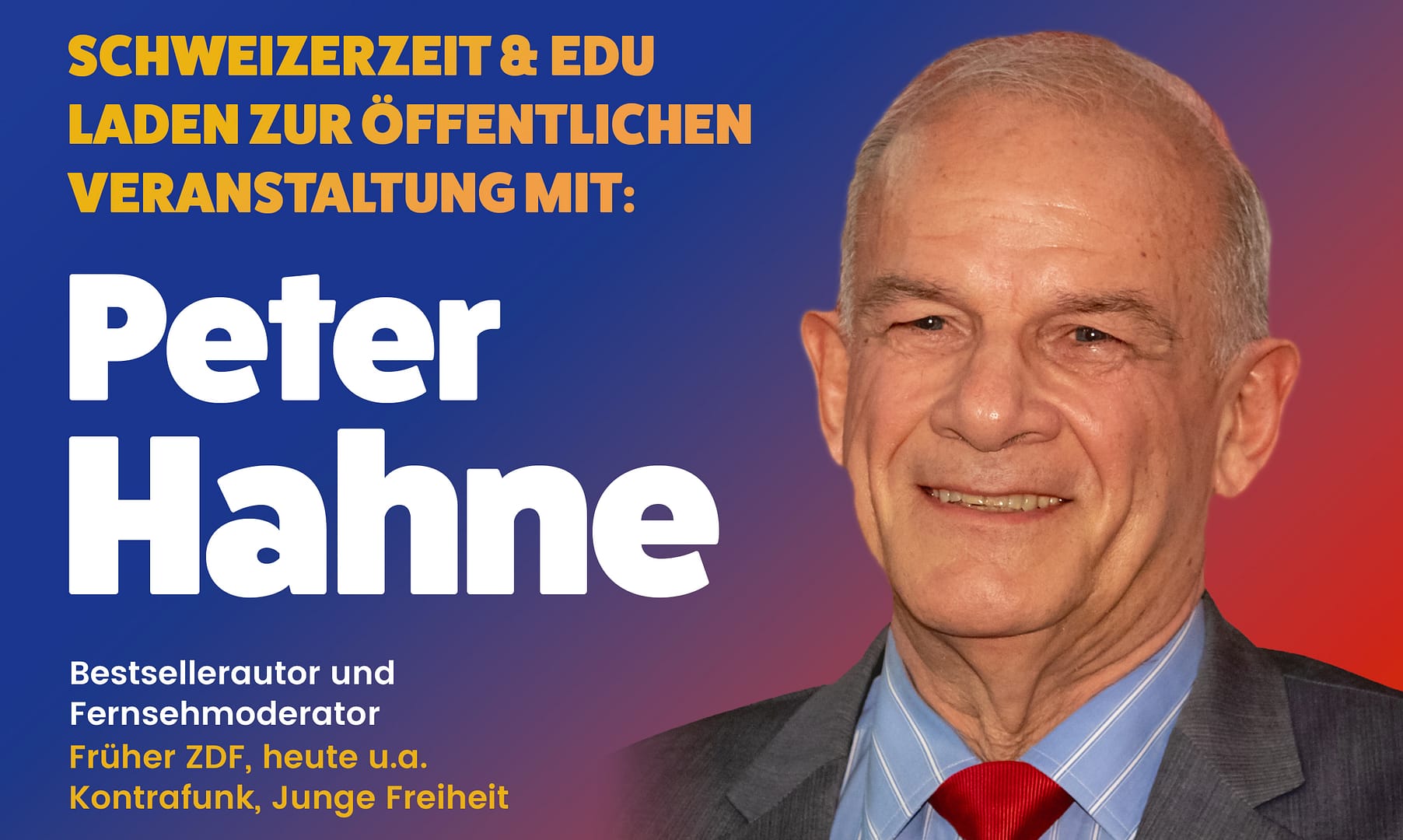 Hier finden Sie alle weiteren Infos zur grossen Veranstaltung mit Peter Hahne, organisiert von der EDU Schweiz und der Schweizerzeit, am Freitag, 26.09.2025. Sichern Sie sich jetzt ein Ticket. «Es hat, solange es hat!»